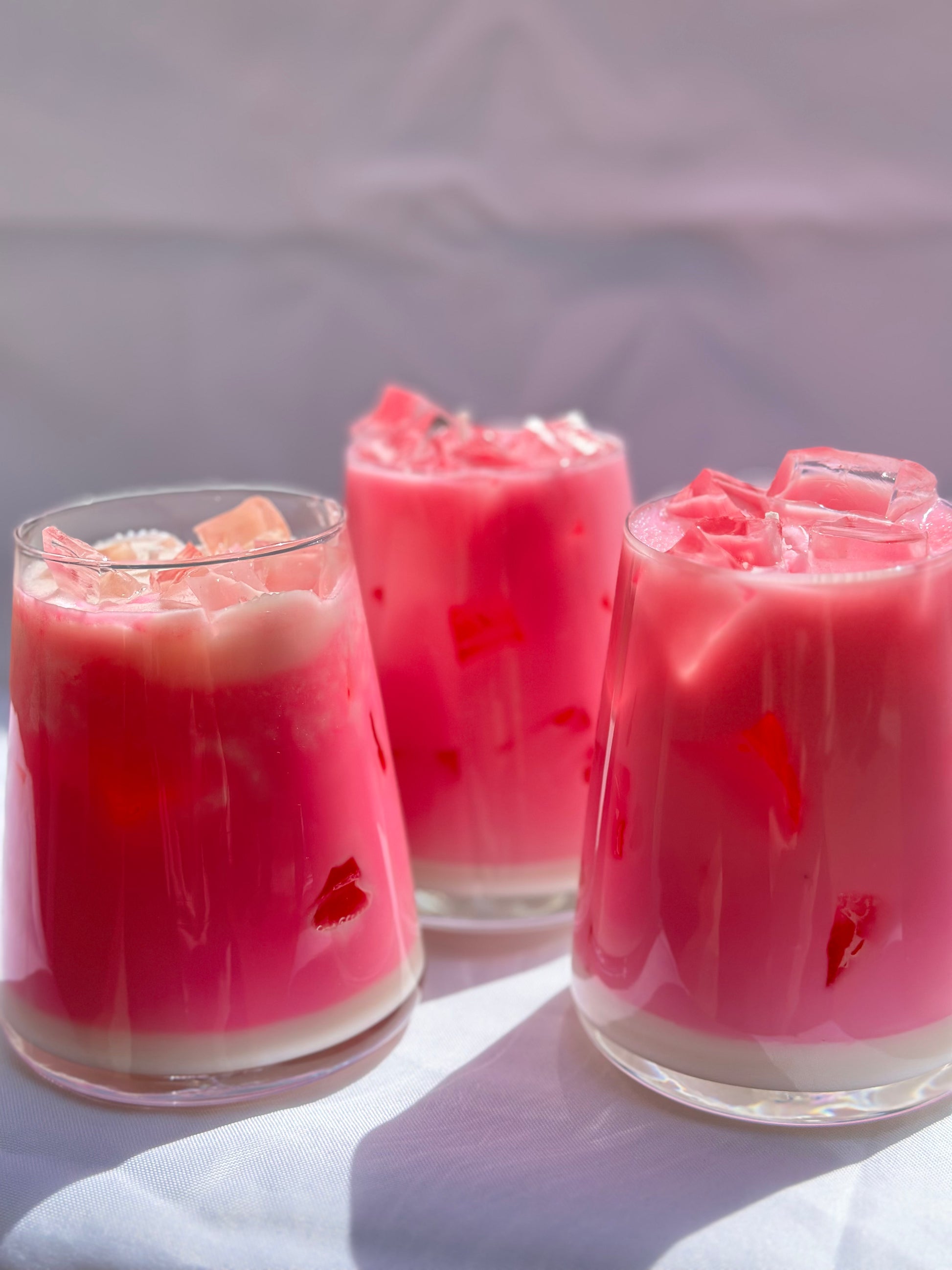 This handcrafted Strawberry Iced Drink Candle looks just like your favorite café pink drink — layered with creamy whites and vibrant strawberry pinks. Infused with the sweet, juicy aroma of real strawberries, it's a refreshing twist on cozy.