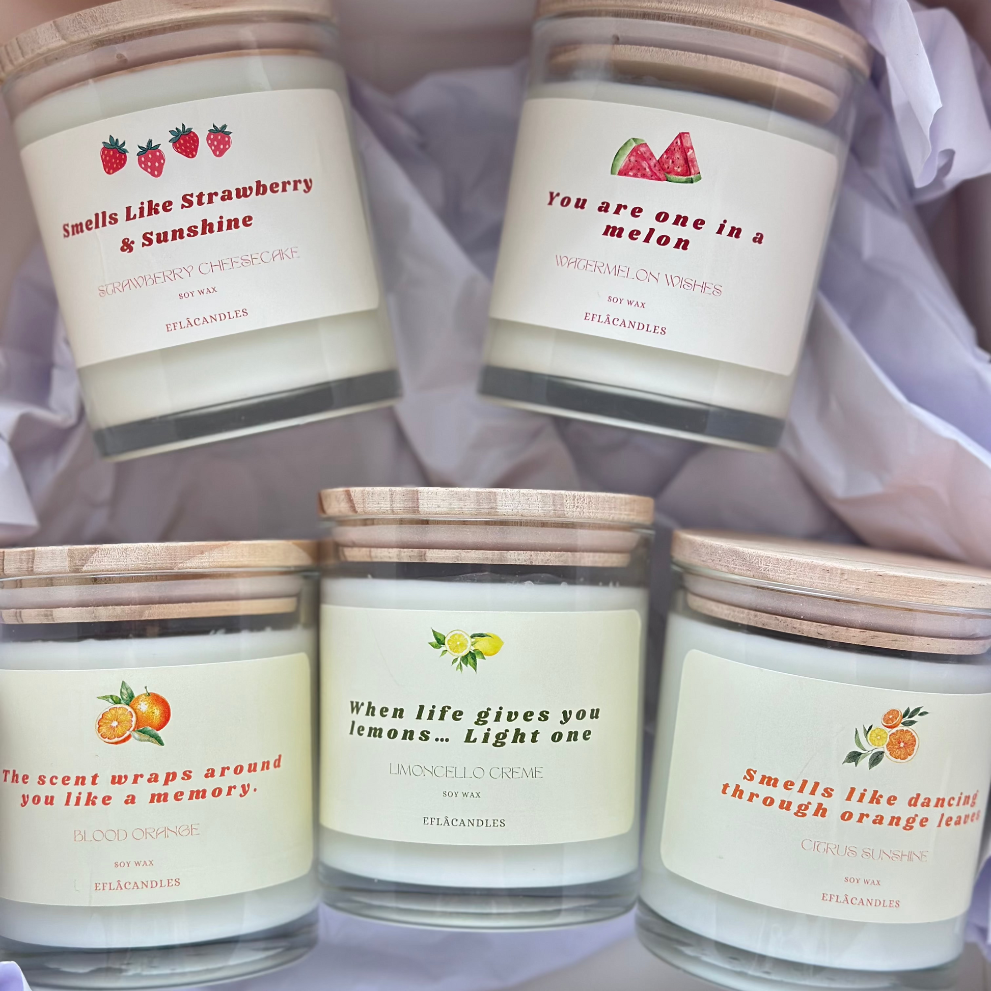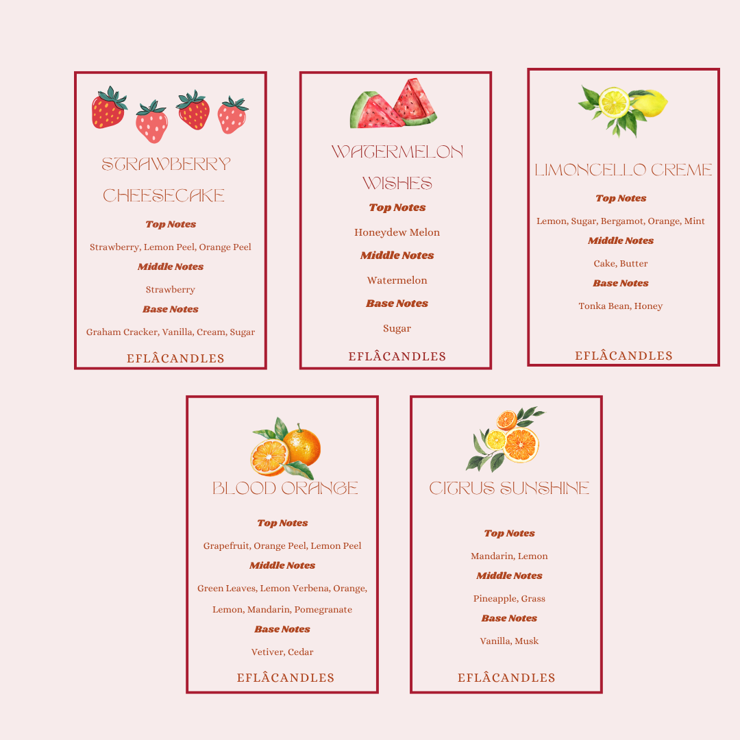 - Scent: Limoncello Creme, Citrus Sunshine, Blood Orange, Watermelon Wishes, Strawberry Cheesecake